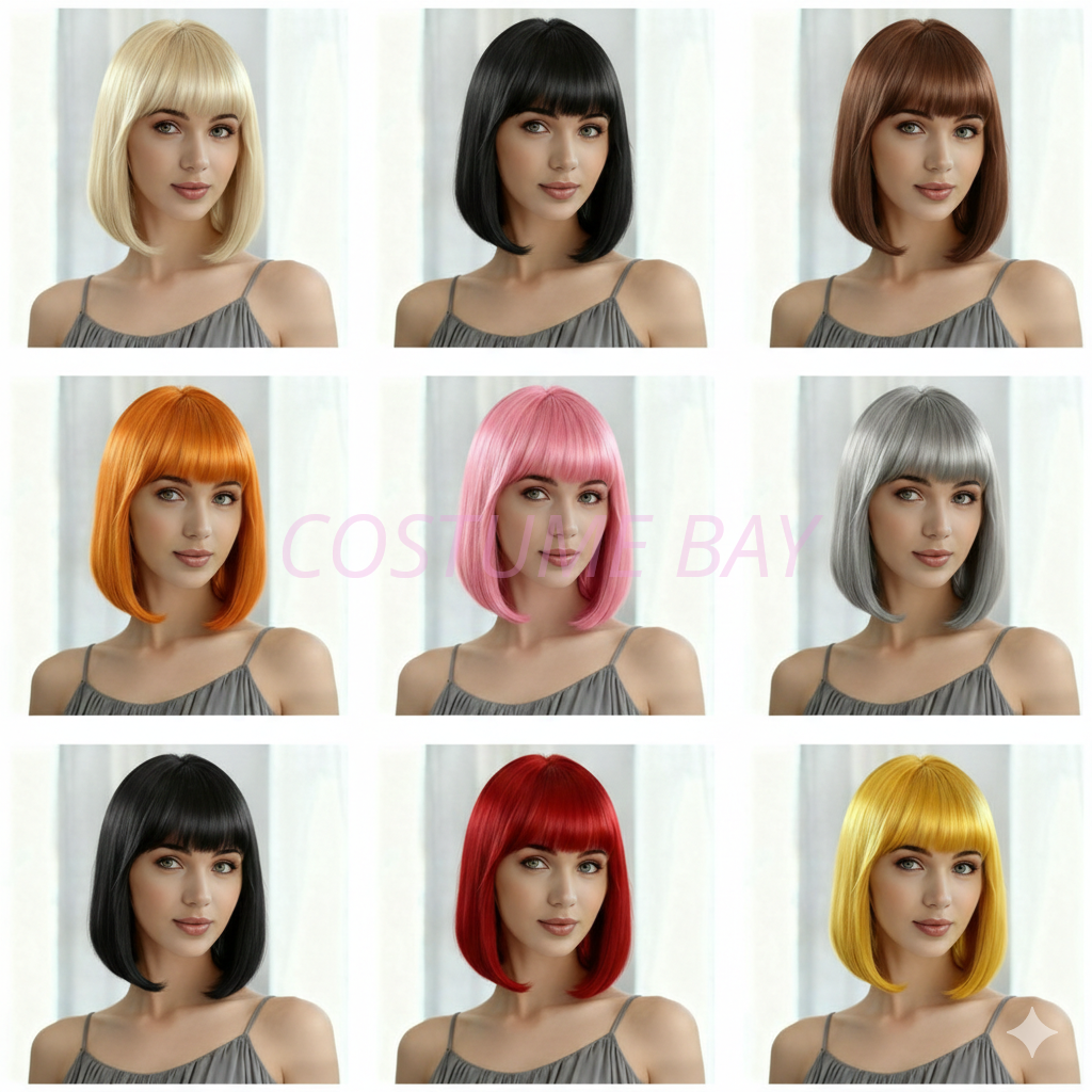 Turn heads with this long straight cosplay wig collection, available in 16 vibrant colours with soft bangs. Made from synthetic fibers, each wig is silky, tangle-free, and comfortable to wear—perfect for cosplay, parties, or bold everyday style.